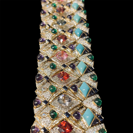 10-0 | 18kYG Wide Bracelet Diamonds Turquiose Amethyst Aquamarine Pink Tourmaline Tsavorite Manderine Garnet Sapphires