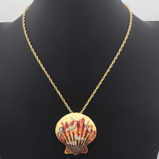 173-280 | 18ky Large Sea Shell Diamond @0.29ct Brooch/Pendant *Small sea shell sold separately