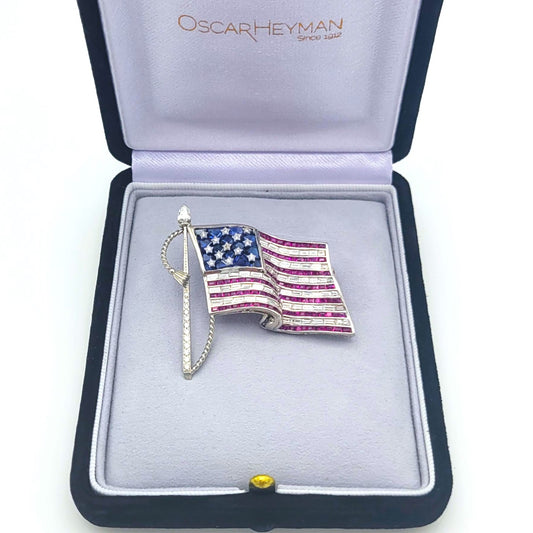 92-35 | Platinum American Flag Pin with Rubies @2.30ct, Diamonds @2.18ct & Sapphires @1.64ct