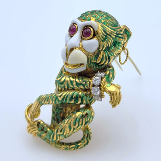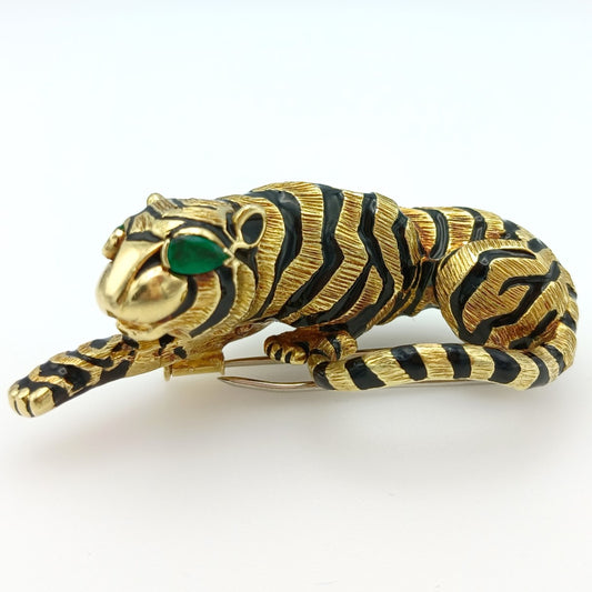 379-23 | 18ky David Webb Leopard Brooch with Emerald Eyes