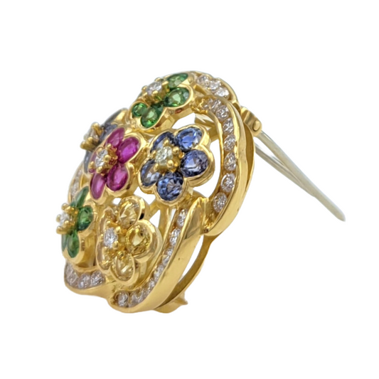173-351 | 18kw 7 Pear Shaped Sapphire and Diamond Flower Brooch