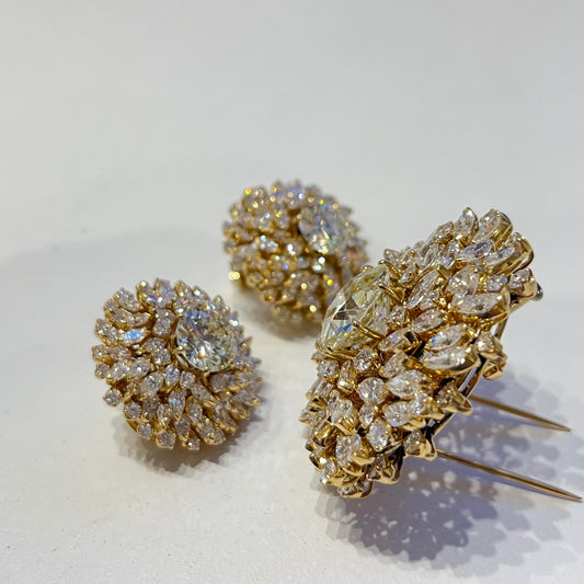 64-47 FAEXEX | 18K BVLGARI Diam. Brooch D:9.41ct Q-VS2 & Earrings D:2.84 M-SI1 D:2.93 M-VS2