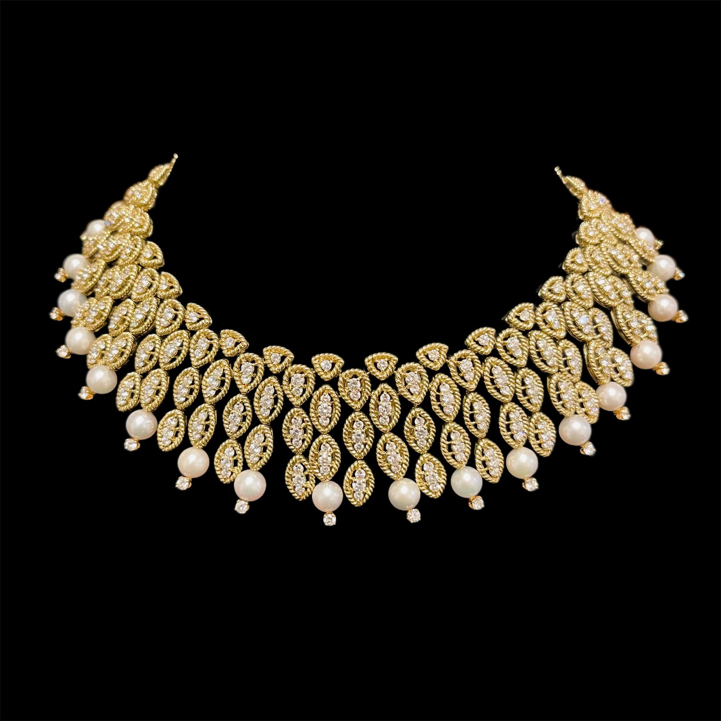 364-53 | 18kYG Hammerman Brothers Diamond and Pearl Collar Diamonds 30.45 cts 29 Akoya Pearls