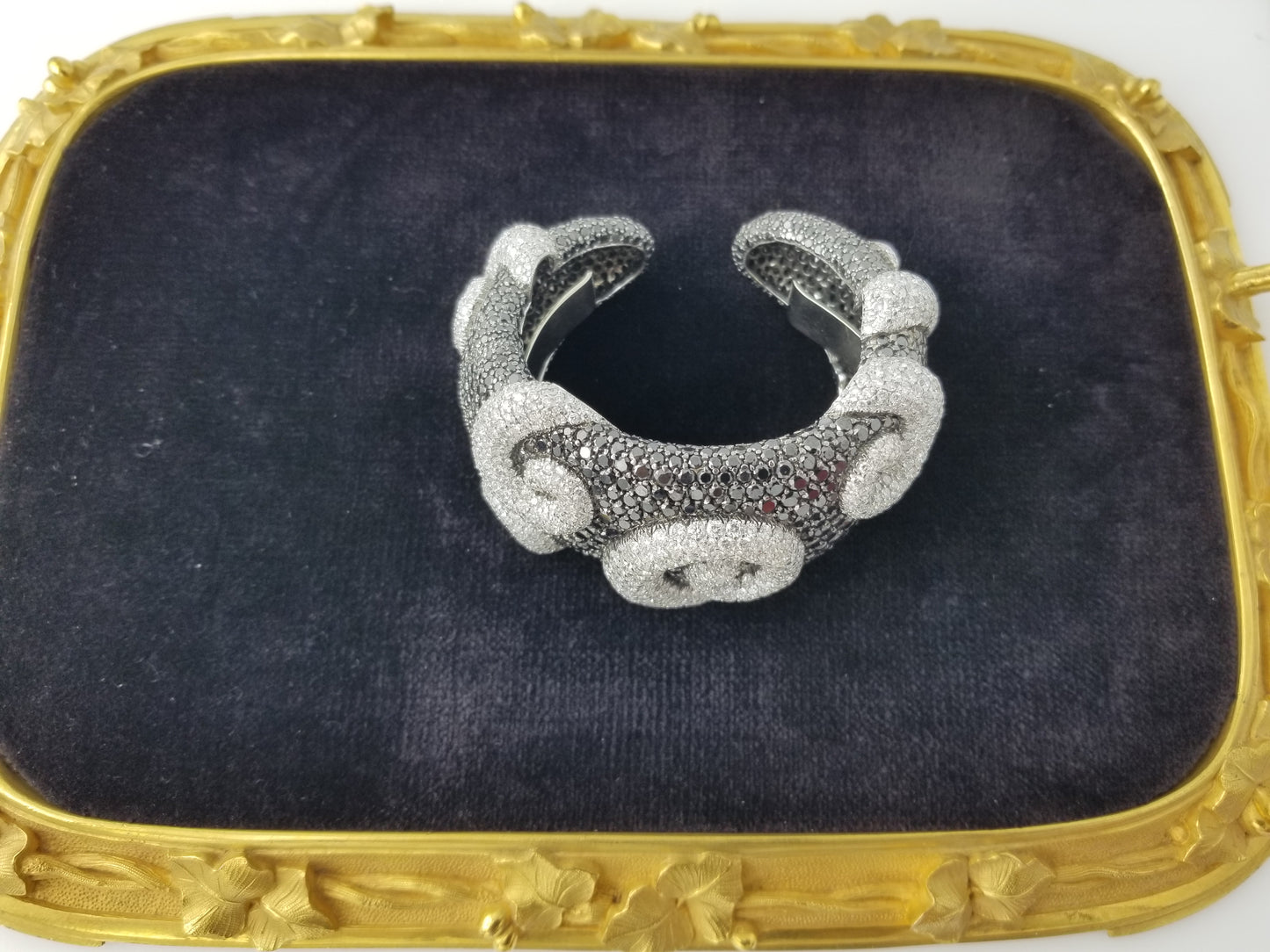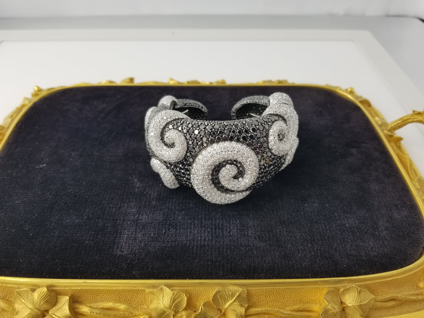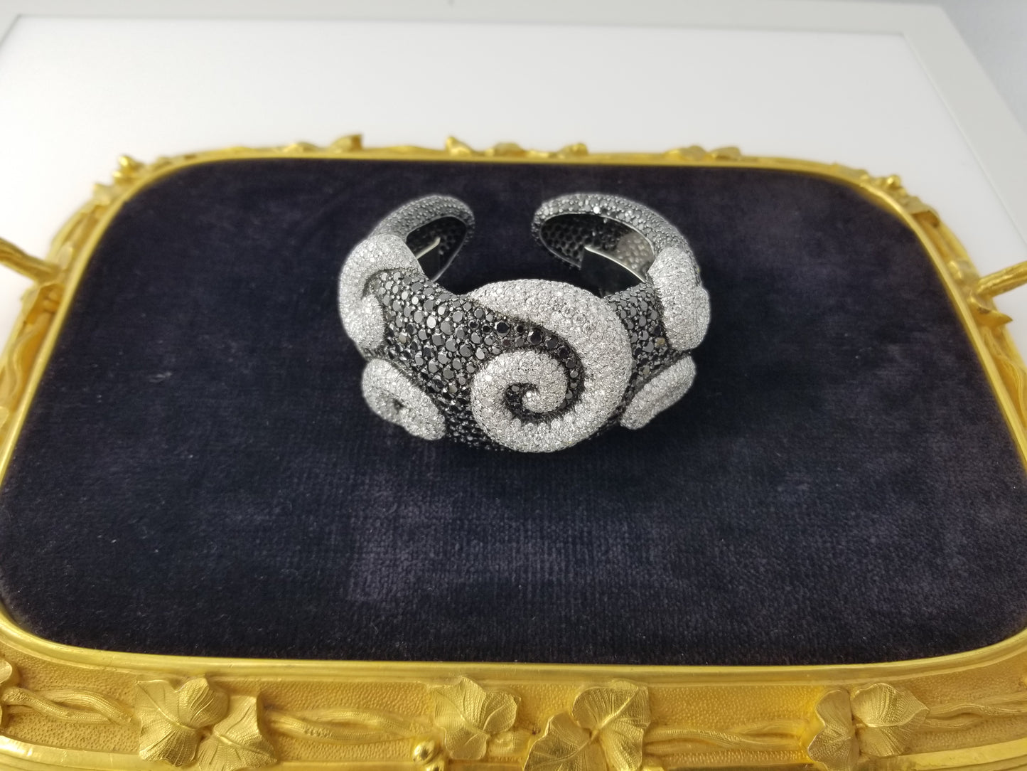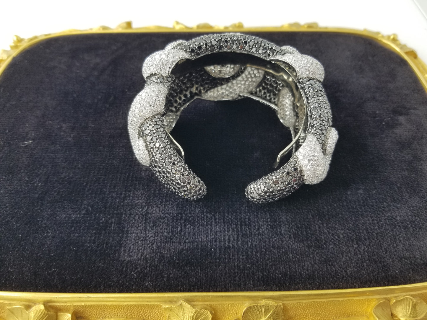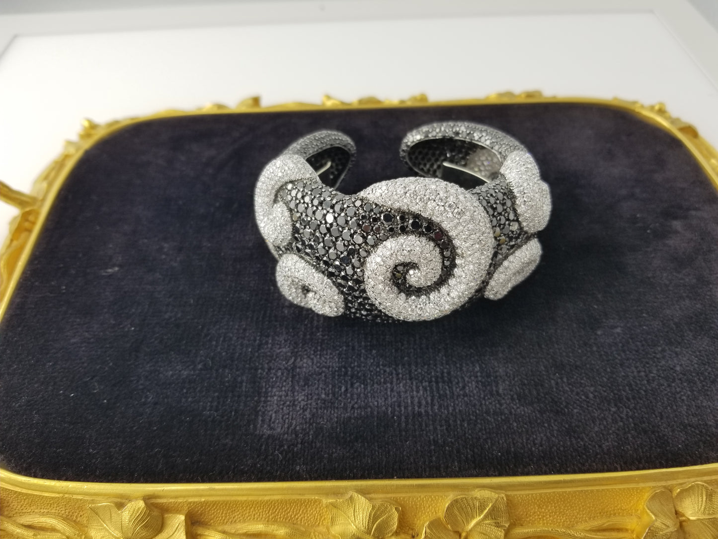 18K W/G Wide Cuff Bracelet of Black & White Diamonds